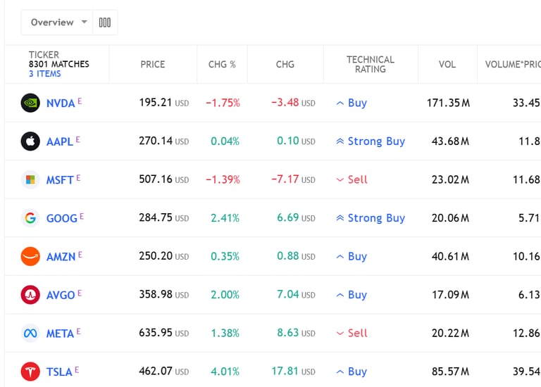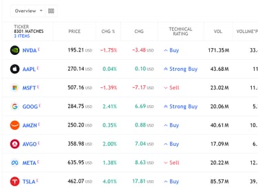 Explore live charts and advanced tools powered by TradingView on our Investor Tools page or any of three Markets — track any stock or asset, switch between chart types, add professional indicators, and perform real-time technical analysis. Use the same tools professionals rely on — and the ones we recommend after testing them all.