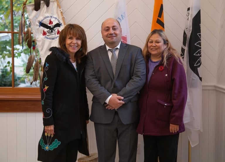 Left to right: Claire Sault, Chief; Sergey Hovasapyan, CFO; Leslie Maracle, Councillor — Mississaugas of the Credit First Nation, ON.