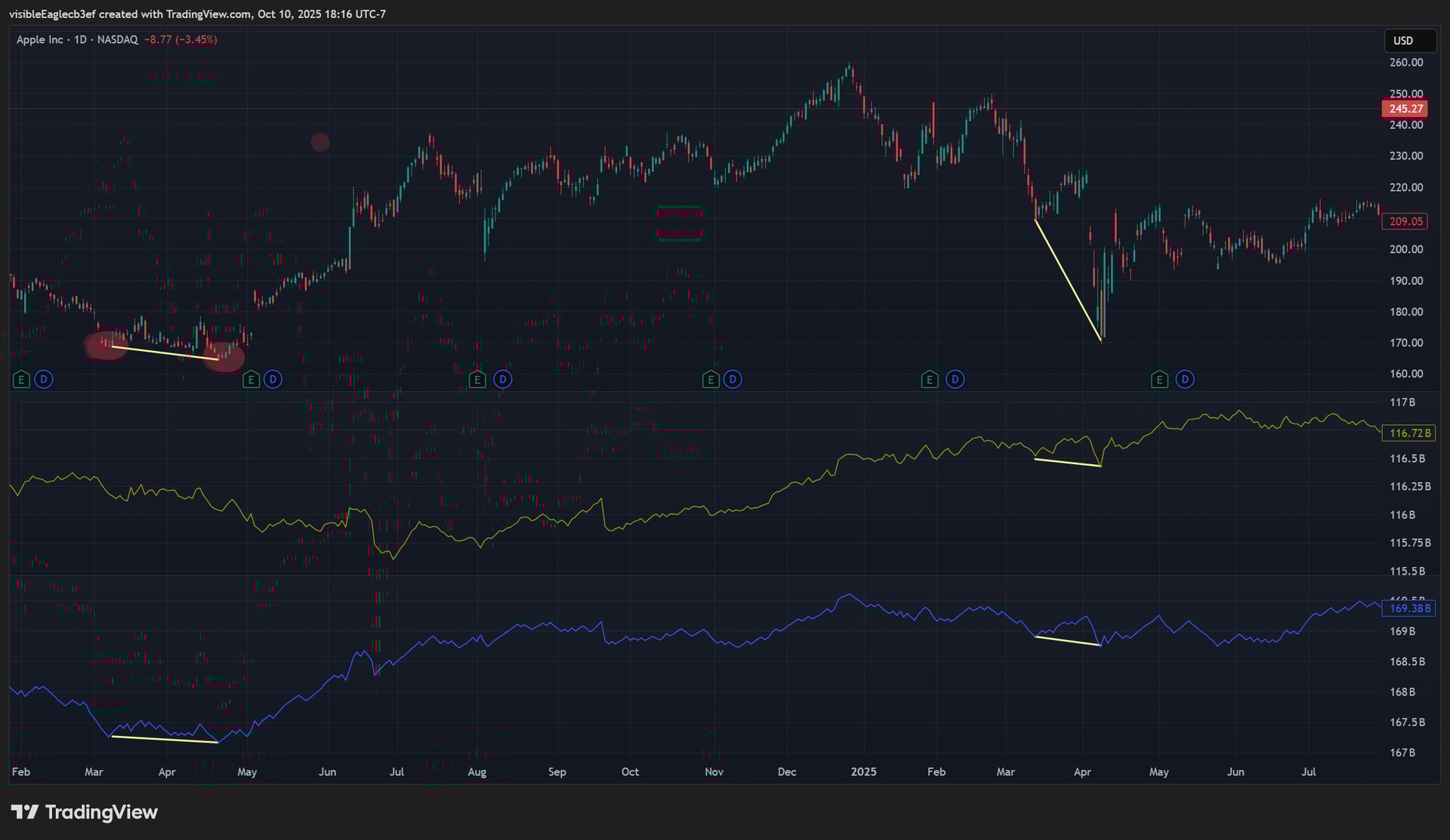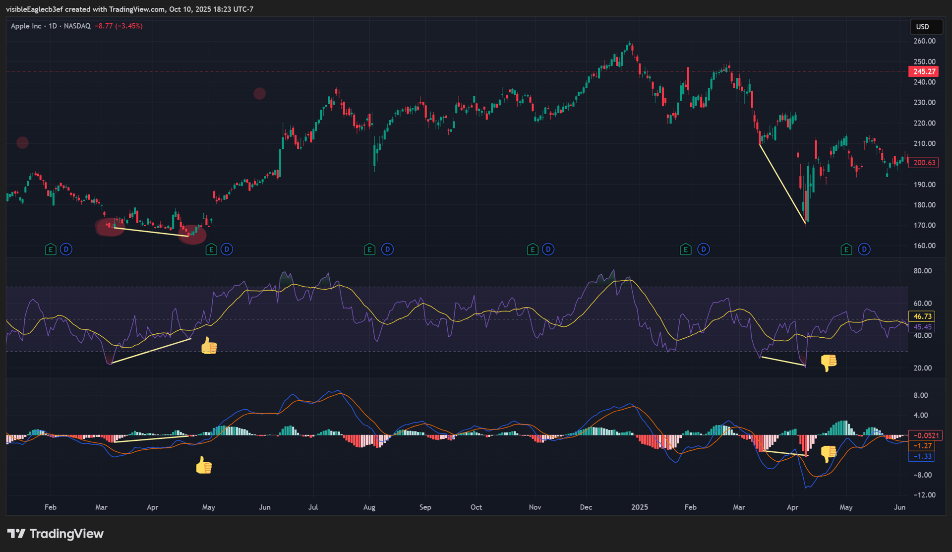 Let's examine real-world examples of RSI and MACD divergence from an Apple's stock chart. In May, 2024, the price had made a lower low. However, both indicators simultaneously formed a higher low. This established a clear bullish divergence, foreshadowing a powerful rally that propelled the price upward.