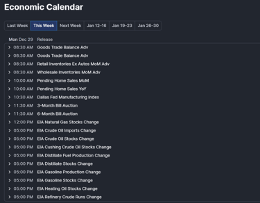 Just head to the Finviz homepage and click on the Calendar widget. From there, you can switch between economic, earnings, and dividends calendars — and explore both upcoming and historical data.